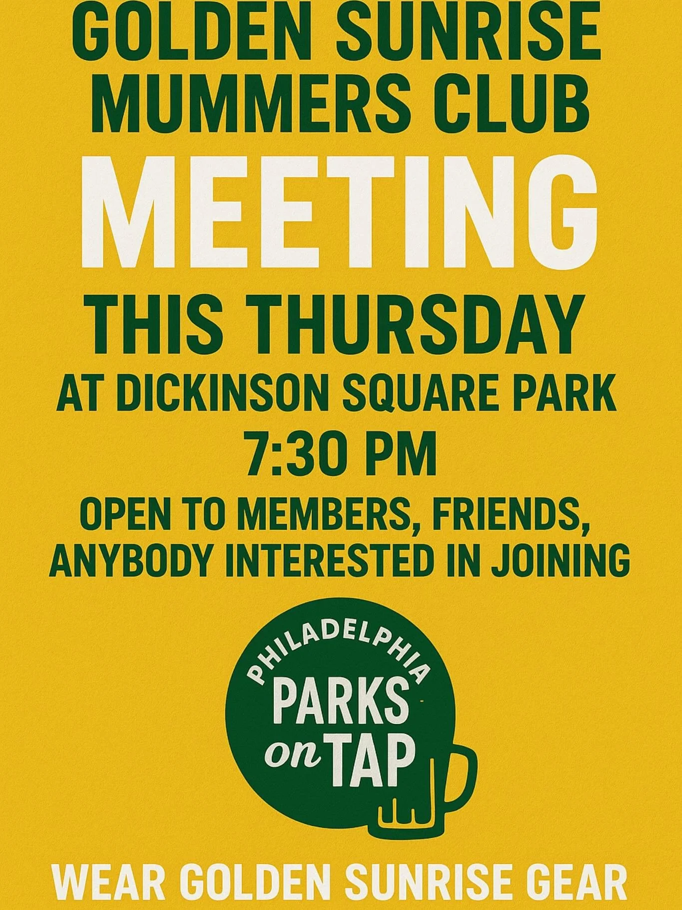 We are the Little Club That Could! We are the last remaining Fancy Club in the Philadelphia Mummers keeping the Fancy Division folk art alive. We are known for our big elaborate beautiful suits and the artform they represent. The Golden Sunrise mummers club values family, friends, inclusivity, diversity, individuality, teamwork, glitter, sequins, showmanship, joy and, of course, New Year’s Day!